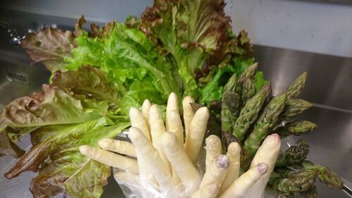 自家栽培サラダ、十勝産露地栽培アスパラガス最盛期です